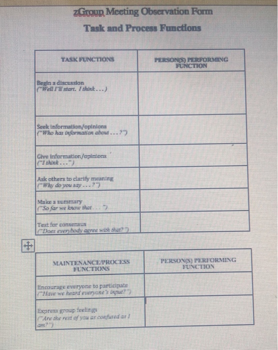 Solved Zgroun Mceting Observation Fom Task And Process Fu Chegg Com