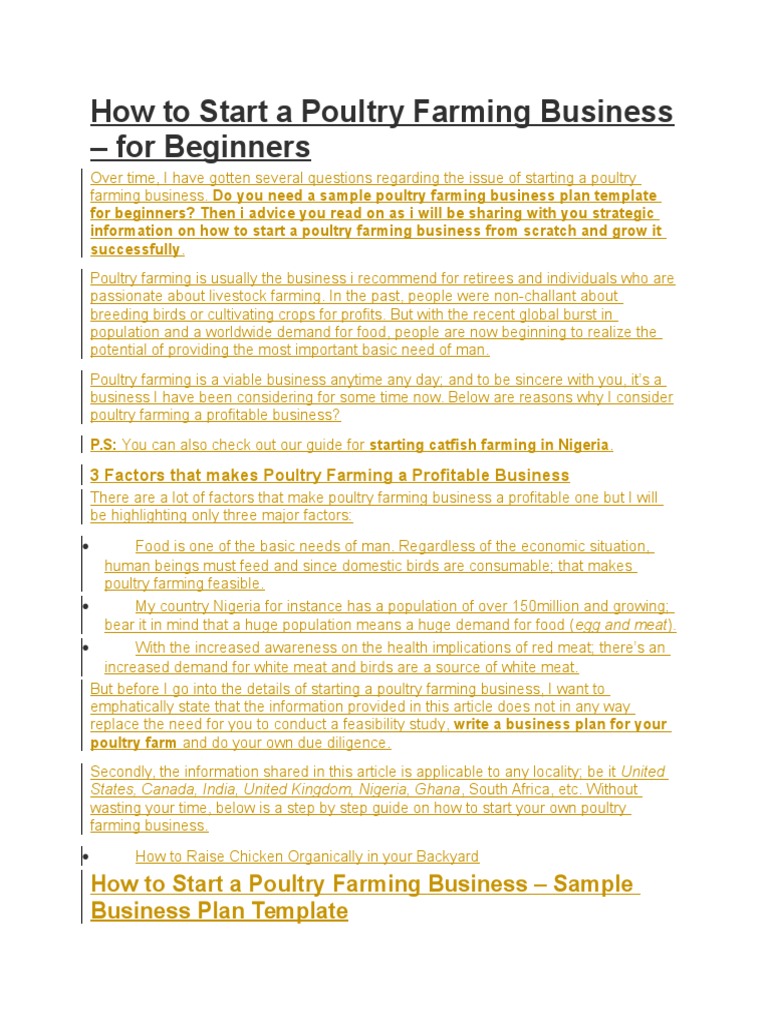 Poultry Farming Business Plan Template For Beginners Docx Poultry Farming Business Plan Template For Beginners Farmerstrend August 2 2016 Poultry Course Hero
